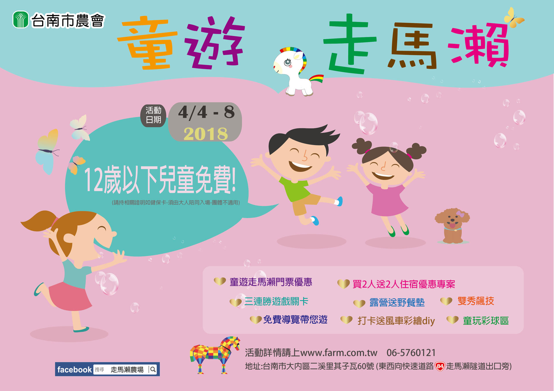 | 好康資訊:12歲以下兒童(含12歲,需有大人陪同)在4/4(三)兒童節當天,持健保卡認證,即可免購入園門票喔! | ||